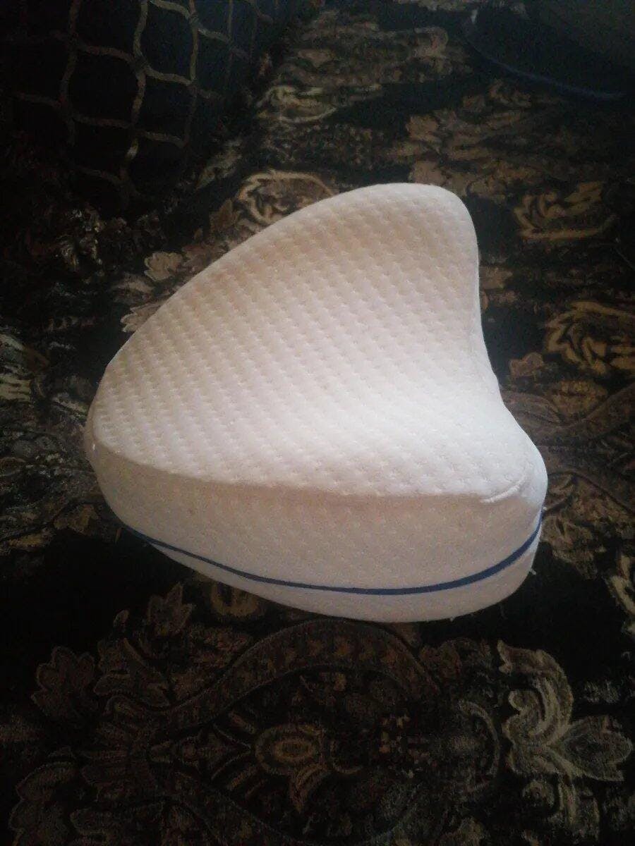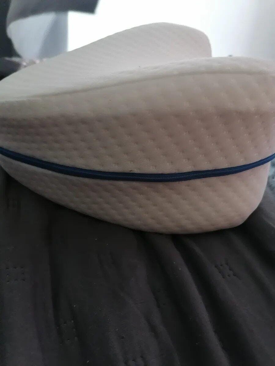 Esta almohada es para ti. Su forma curva mantiene piernas, caderas y columna alineadas, evitando que tu espalda se tuerza durante la noche.