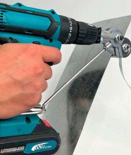 Olvídate de tijeras que doblan la lámina o esmeriles riesgosos. Con este adaptador puedes cortar metal de forma rápida y controlada, usando el taladro que ya tienes en casa o en tu taller.